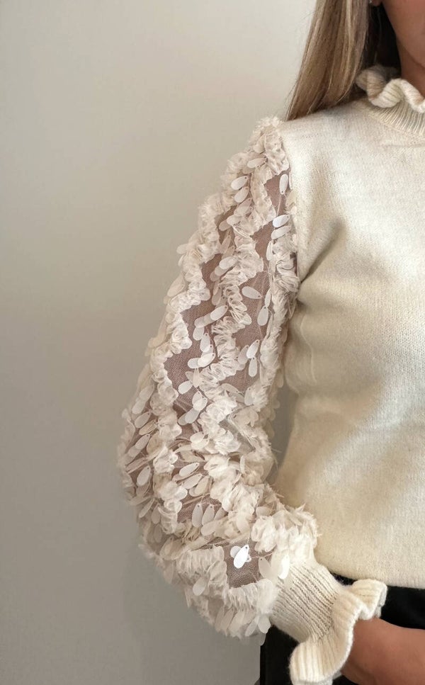Deze pull heeft pailletten thv de mouwen & volants thv de onderkant van de mouwen & kraag 🤍