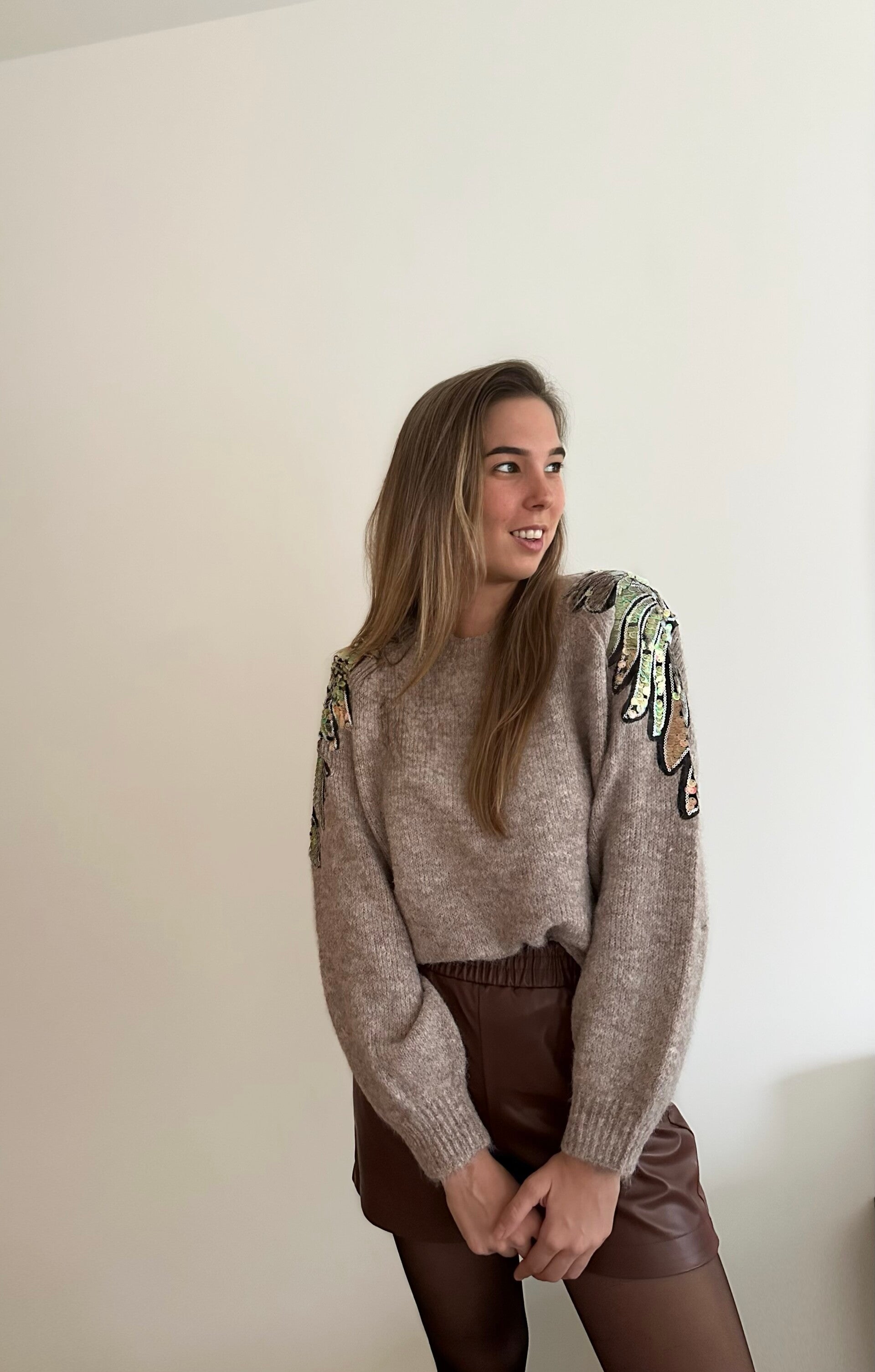 Deze sweater heeft heel mooie details thv de schouders. De ideale trui voor de feestdagen ✨🪩