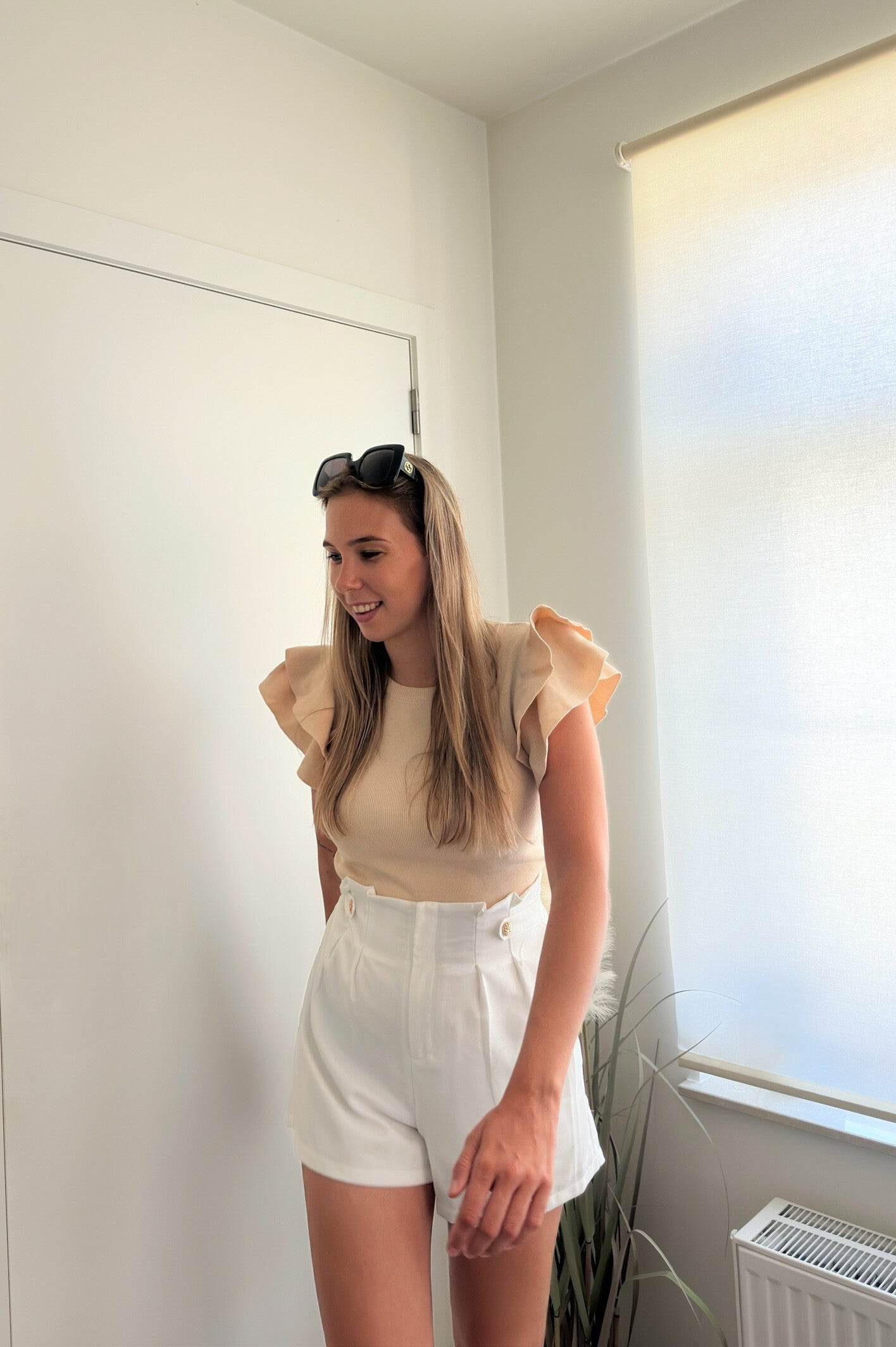 Deze short valt op maat 🤍 Gouden knoopjes aan de voorzijde van de short