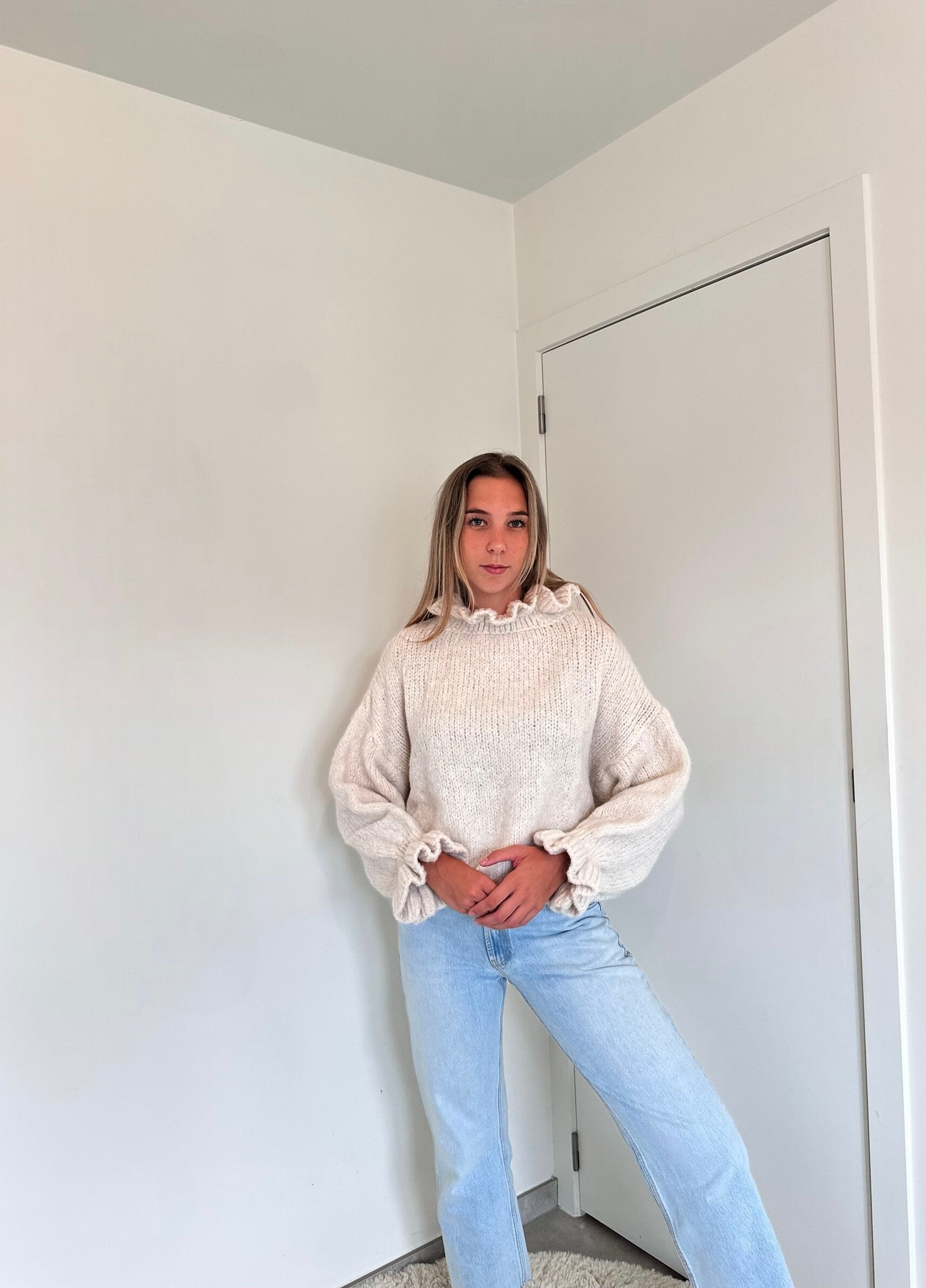 Cosy wollen trui met elegante volantsmouwen – stijlvol en vrouwelijk.
