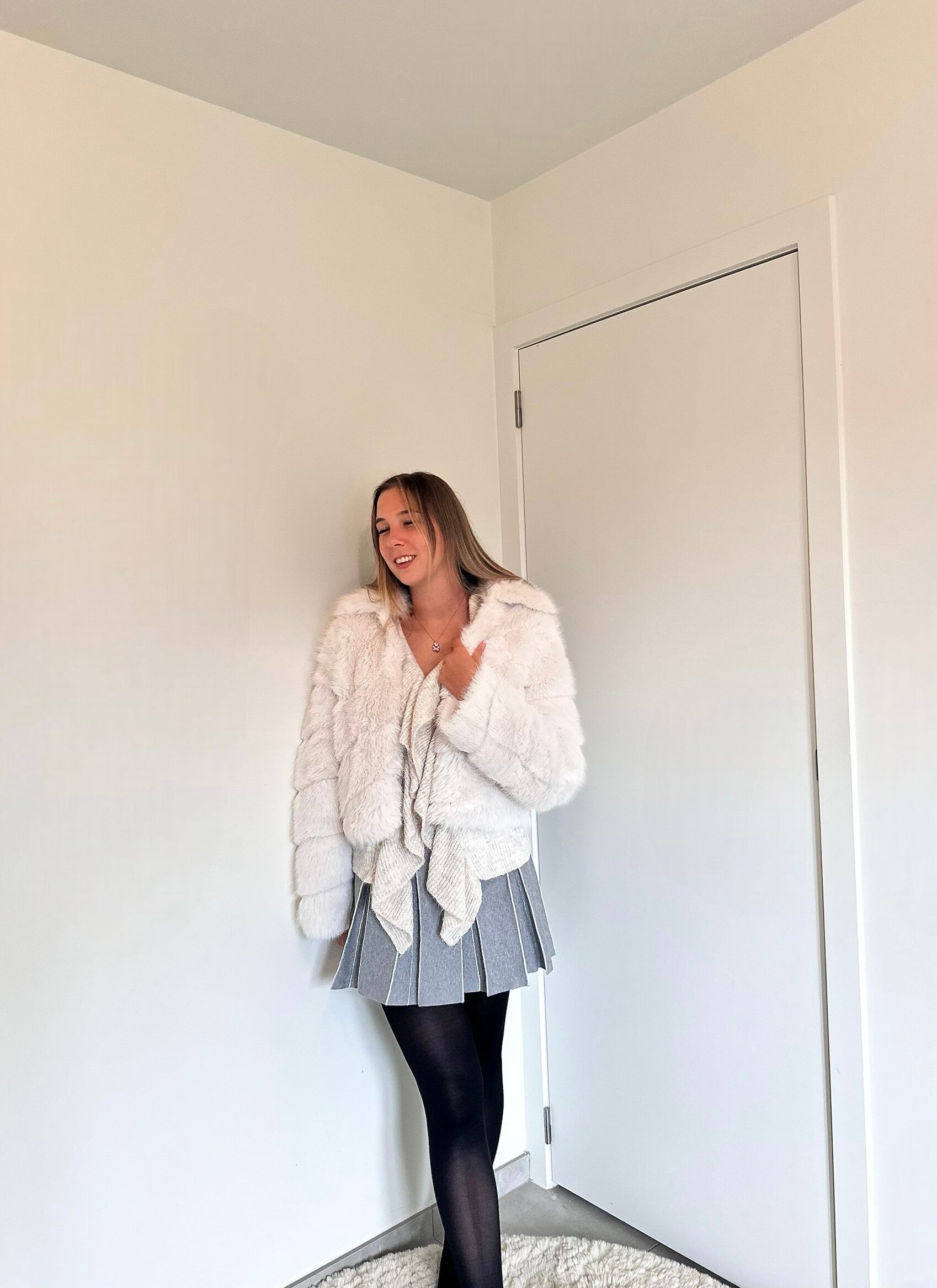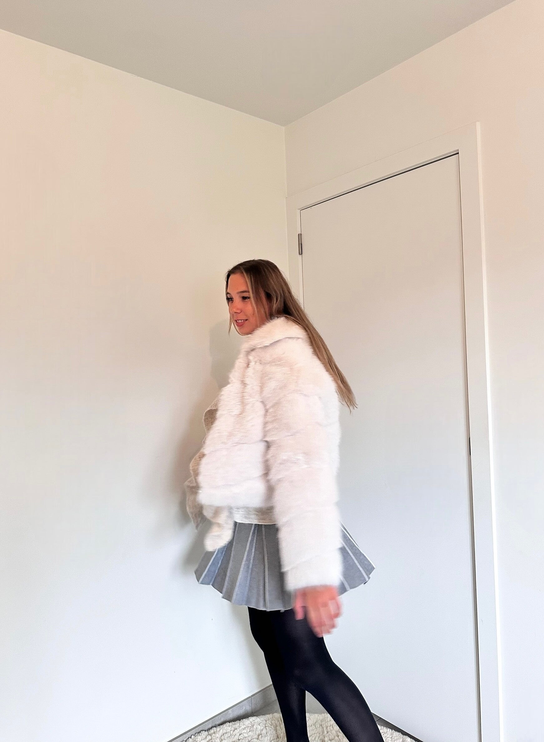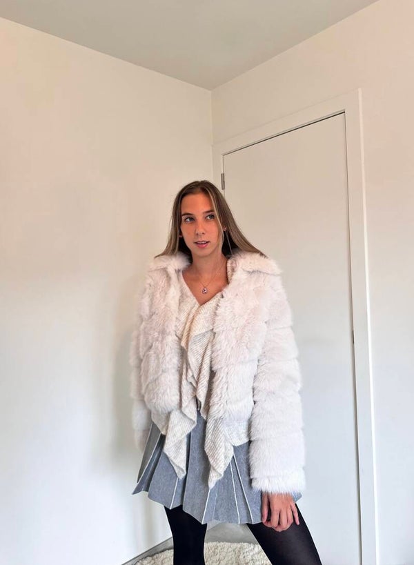 Zachte witte faux fur jas met rits – cosy, warm en stijlvol 🧸
