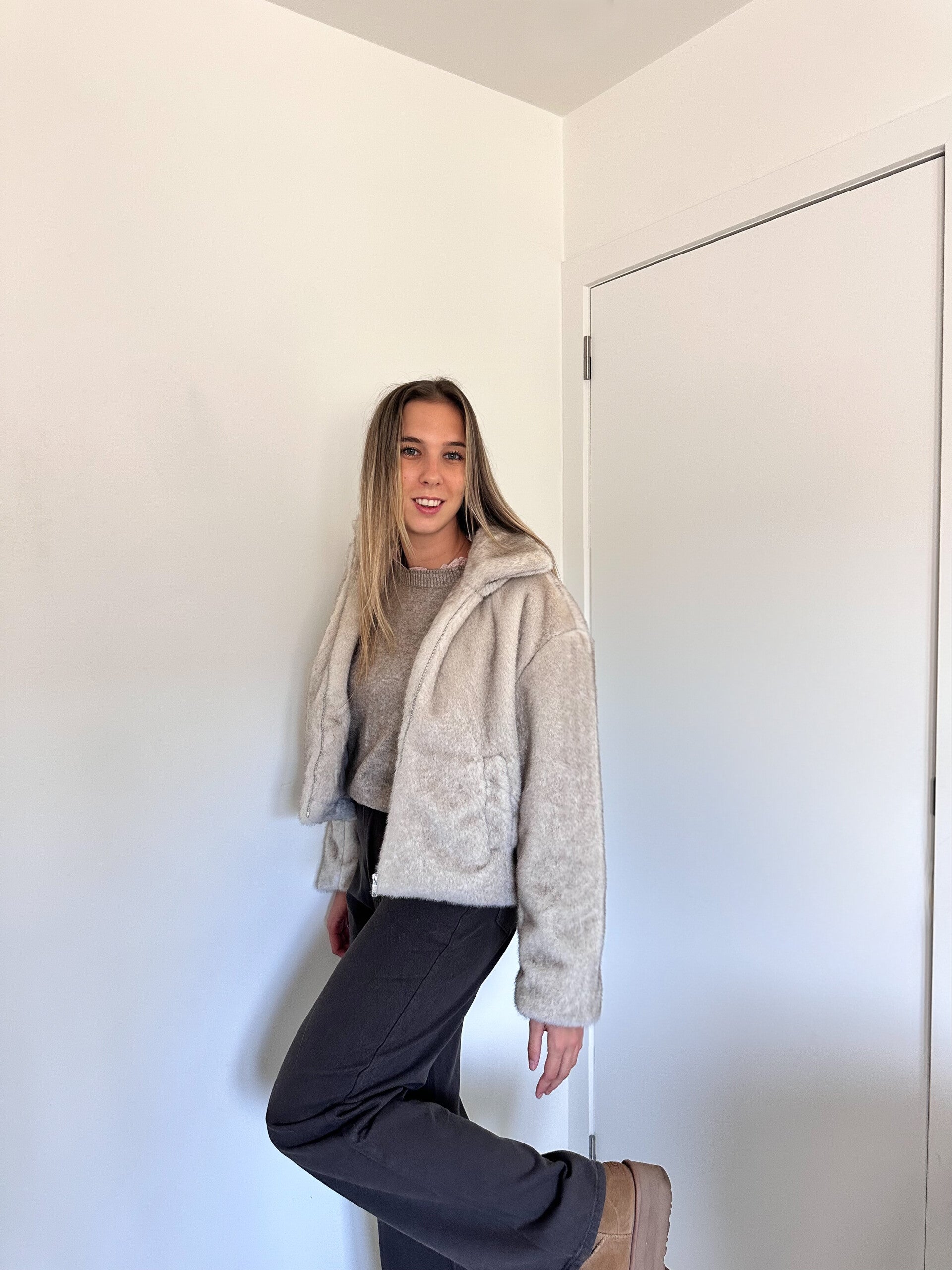 Deze jas heeft een ritssluiting om de jas te sluiten.