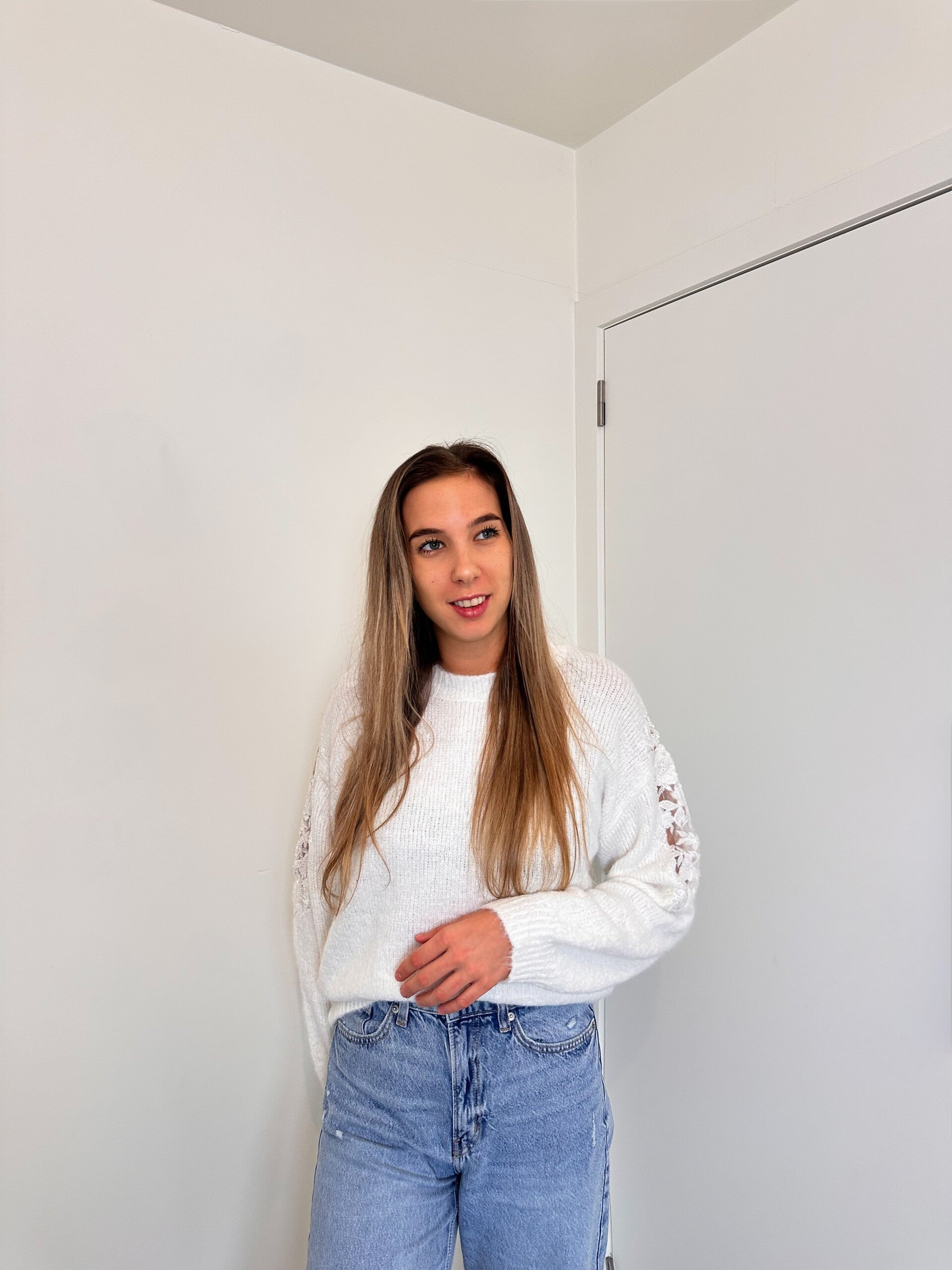Deze trui bevat kanten glitterdetails ter hoogte van de schouders ✨