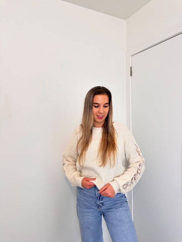 Deze trui bevat kanten details ter hoogte van beide mouwen 🤍