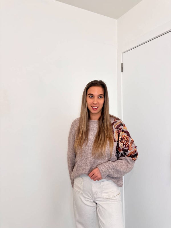 Deze trui bevat glitterdetails ter hoogte van de linker schouderkant van de trui 🧸