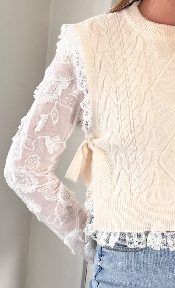 Femke draagt deze debardeur in combinatie met onze Leah blouse en wide leg jeans.
