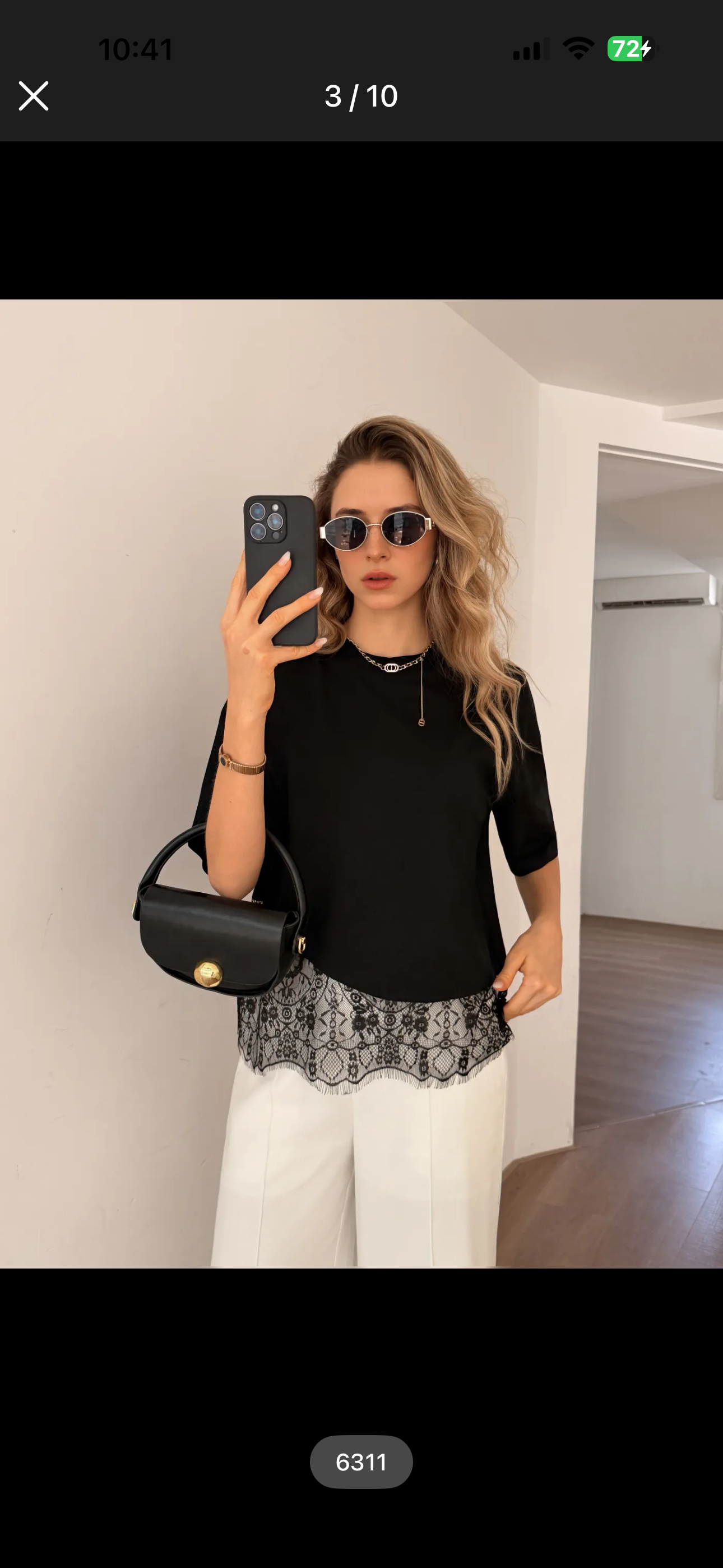 Deze t-shirt heeft elegante kanten details onderaan en combineert perfect met een jeansbroek/witte pantalon.